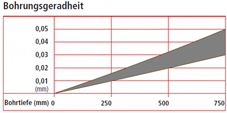 0,1 mm / 100 mm Bohrtiefe innerhalb einer Gesamtbohrtiefe von 70 x Bohrdurchmesser |