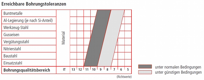 0 / +0,1 mm bis Bohrdurchmesser 100 mm entspricht IT8 (werkstoffabhängig) |