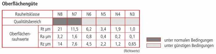 *Die genannten Rauheiten sind als Richtwerte zu sehen, so können in NE-Metalle wie Titan oder Aluminium oft Werte kleiner Ra 1,0 µm erzielt werden. |