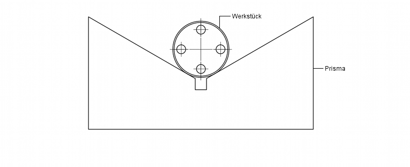 Die Werkstücke werden in Prismen gespannt und sollten daher einen zylindrisch überdrehten Außendurchmesser sowie eine plangedrehte Anbohrfläche zum Anlegen einer Bohrbuchse aufweisen.